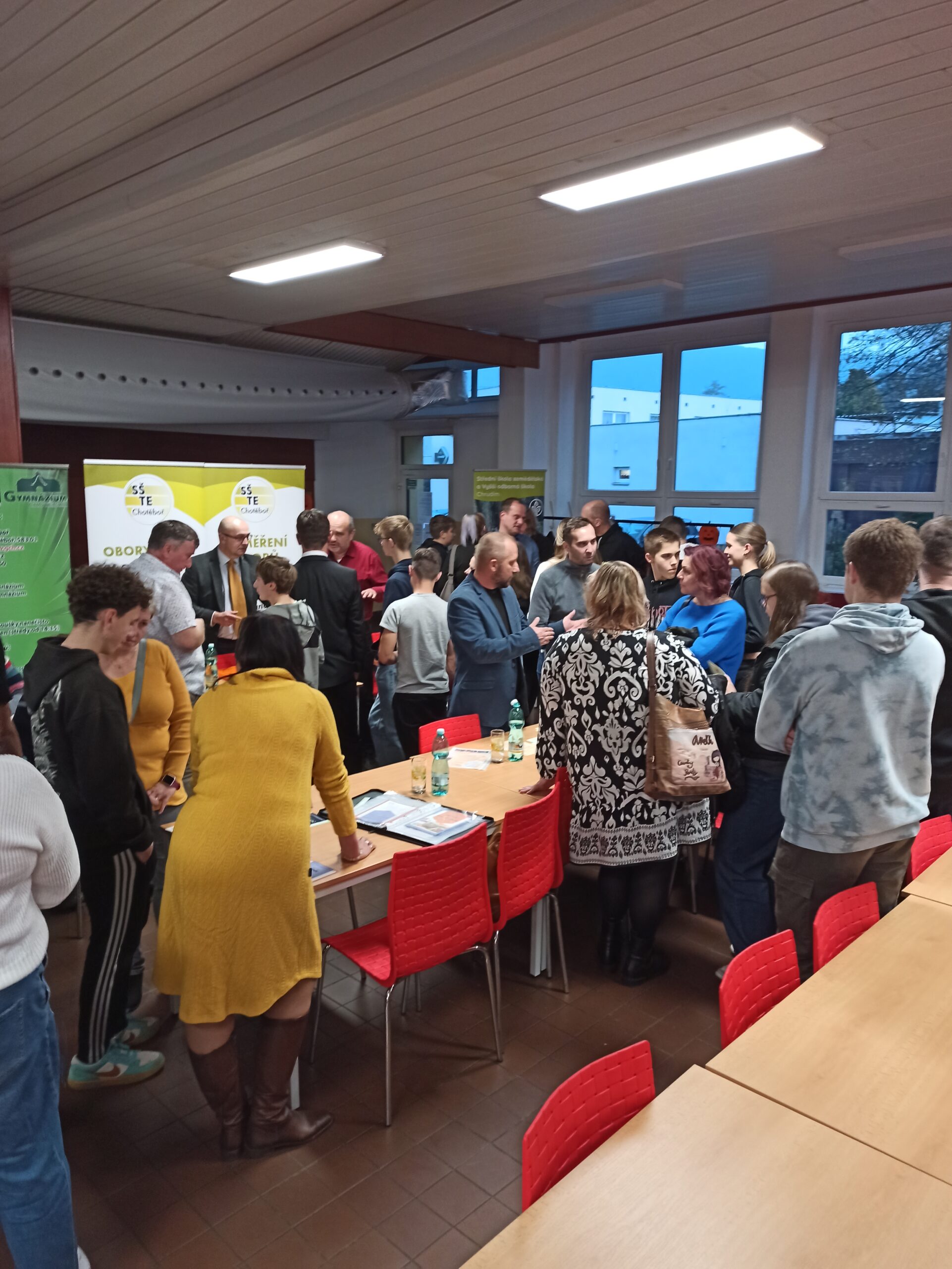 Ve čtvrtek 7. listopadu se žáci devátého ročníku spolu se svými rodiči zúčastnili akce „Burza škol“. Do naší školní jídelny dorazili zástupci středních škol z okolí. Byla zde samozřejmě k vidění i třemošnická střední škola. Dále k nám zavítaly třeba školy z Čáslavi, Chotěboře, Chrudimi, Pardubic a další. Po celou dobu burzy jsme bedlivě poslouchali zástupce daných škol. Snažili jsme se, abychom si zapamatovali co nejvíce informací především o těch nabízených oborech, které nás zajímají. Po úvodním představení škol jsme měli možnost tázat se přítomných zástupců a popřípadě si vzít i nějaký leták. Celá burza skončila krátce po páté hodině večerní. Všem zástupcům škol děkujeme. Velmi si vážíme toho, že pro nás obětovali své volné odpoledne. S některými z nich se snad uvidíme znova na dnech otevřených dveří 🙂