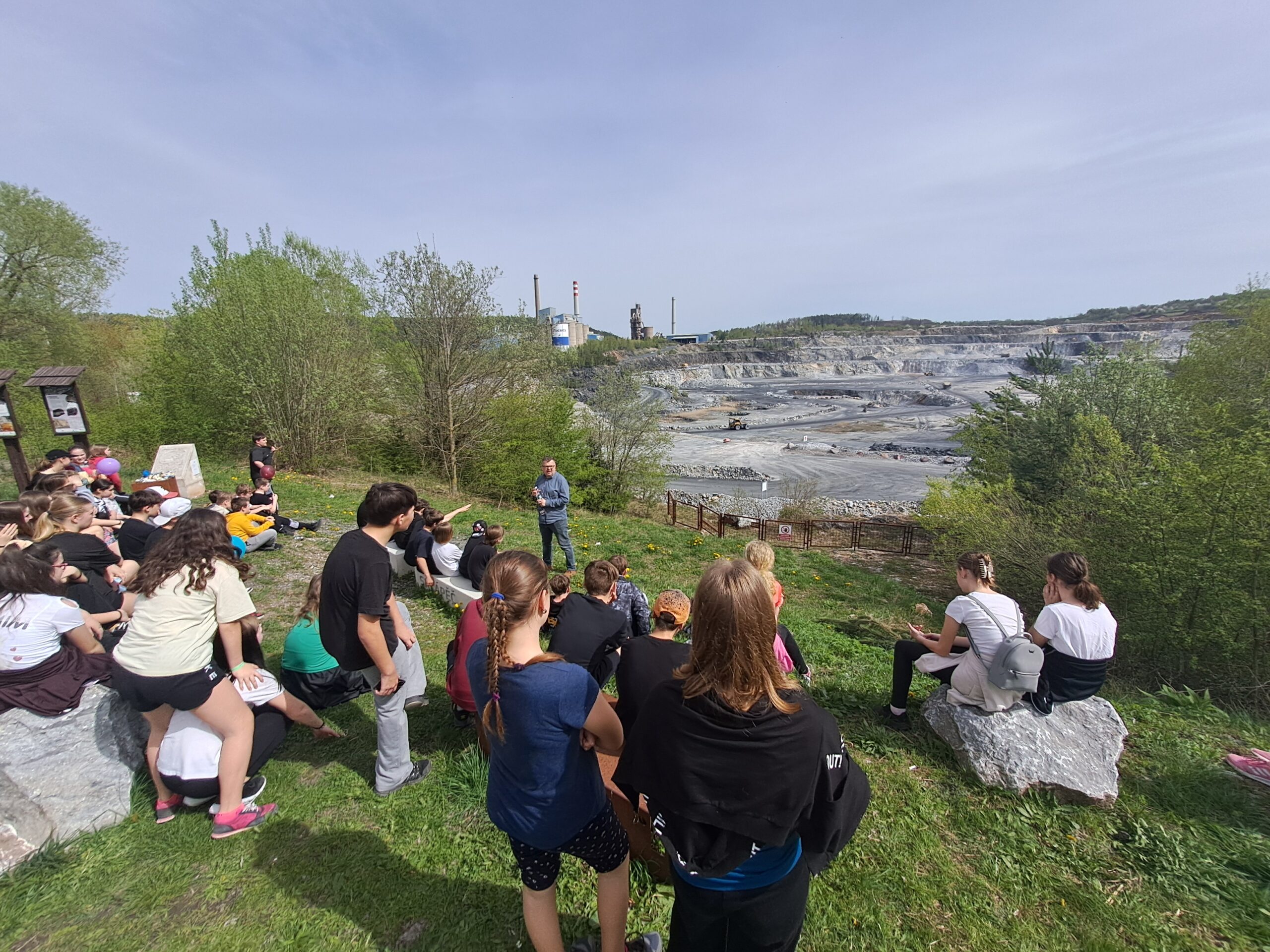 V pondělí 8. dubna se žáci obou sedmých tříd spolu se svými učitelkami vydali autobusem do cementárny Cemex v nedalekých Prachovicích. Spolu s námi dorazily na místo i jiné školy z okolí. Celý pro nás přichystaný program byl zaměřen na ochranu životního prostředí a posílení dobrých vztahů mezi spolužáky. Po příjezdu na místo nás uvítala paní organizátorka s milou pozorností pro každého účastníka. Pak dostala každá škola svůj rozpis stanovišť a časů, podle kterého jsme se museli řídit. My jsme nejdříve navštívili stanoviště s názvem „Jeden za všechny a všichni za jednoho“. Zde jsme si vyzkoušeli některé aktivity upevňující dobré vztahy a spolupráci mezi spolužáky. Na dalším stanovišti jsme si vyzkoušeli, zda správně třídíme odpadky. Za každou chybu bychom měli udělat pět dřepů. Dopadlo to tak, že jsme měli provést padesát dřepů. My jsme raději slíbili, že budeme doma pečlivěji třídit odpad, a tak nám byla polovina dřepů odpuštěna. Předposlední stanoviště bylo uvnitř budovy. Tam si každý vyrobil dvě svíčky, náramek, papír, a mýdlo. Kdo chtěl, mohl ochutnat tři druhy čajů z bylinek. Zbývalo poslední stanoviště, a to zasadit stromky. Kluci zasadili jeden větší a holky jeden menší. Pak jsme nasedli do autobusu a jeli jsme se podívat na lom. Tam jsme položili pár zvídavých otázek našemu průvodci, panu Gajdošíkovi, který nám vše ochotně vysvětlil. Nakonec jsme se přesunuli do „velína“, kde byly všude televize s kamerami. Poté jsme už jeli domů. Všem se výlet líbil. Celé naučné a zároveň zábavné dopoledne jsme si báječně užili.