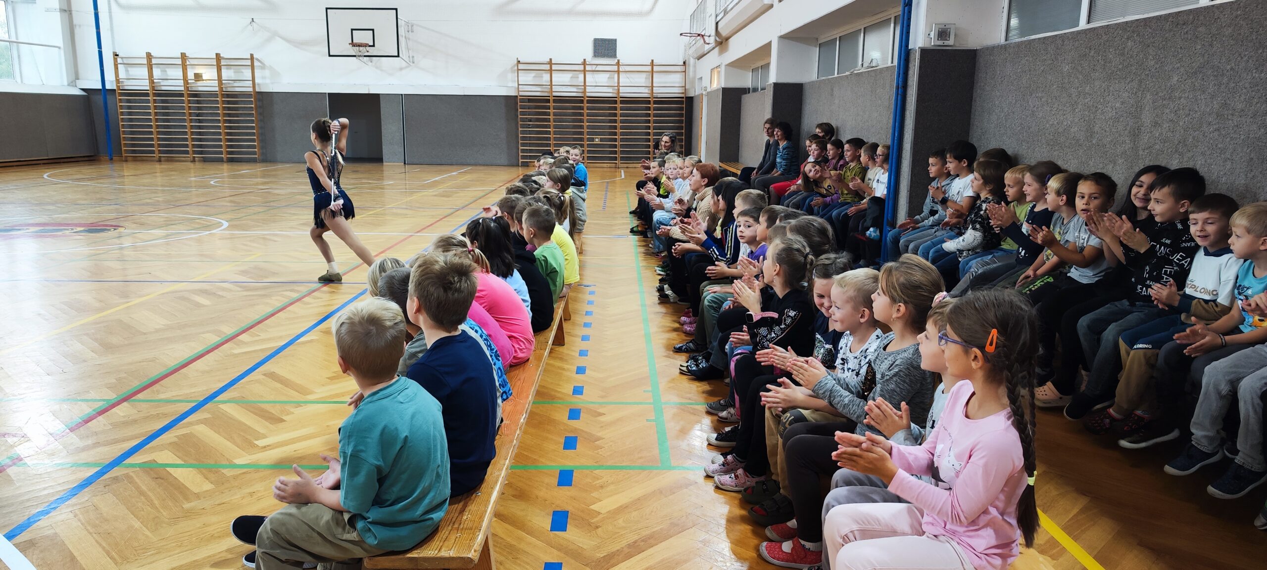 V úterý 16. října proběhlo v tělocvičně naší školy ukázkové představení mažoretek pod vedením instruktorky Sáry Šmídové.